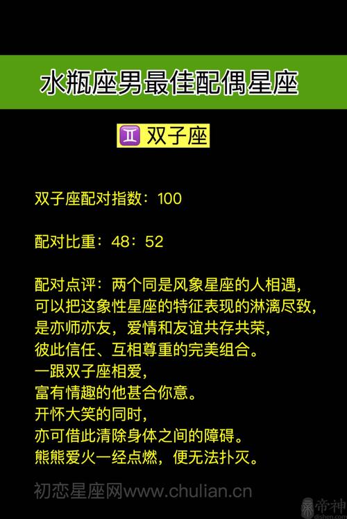 双子男和水瓶女的配对指数是多少?一、双子座男人喜欢的类型:温柔有趣